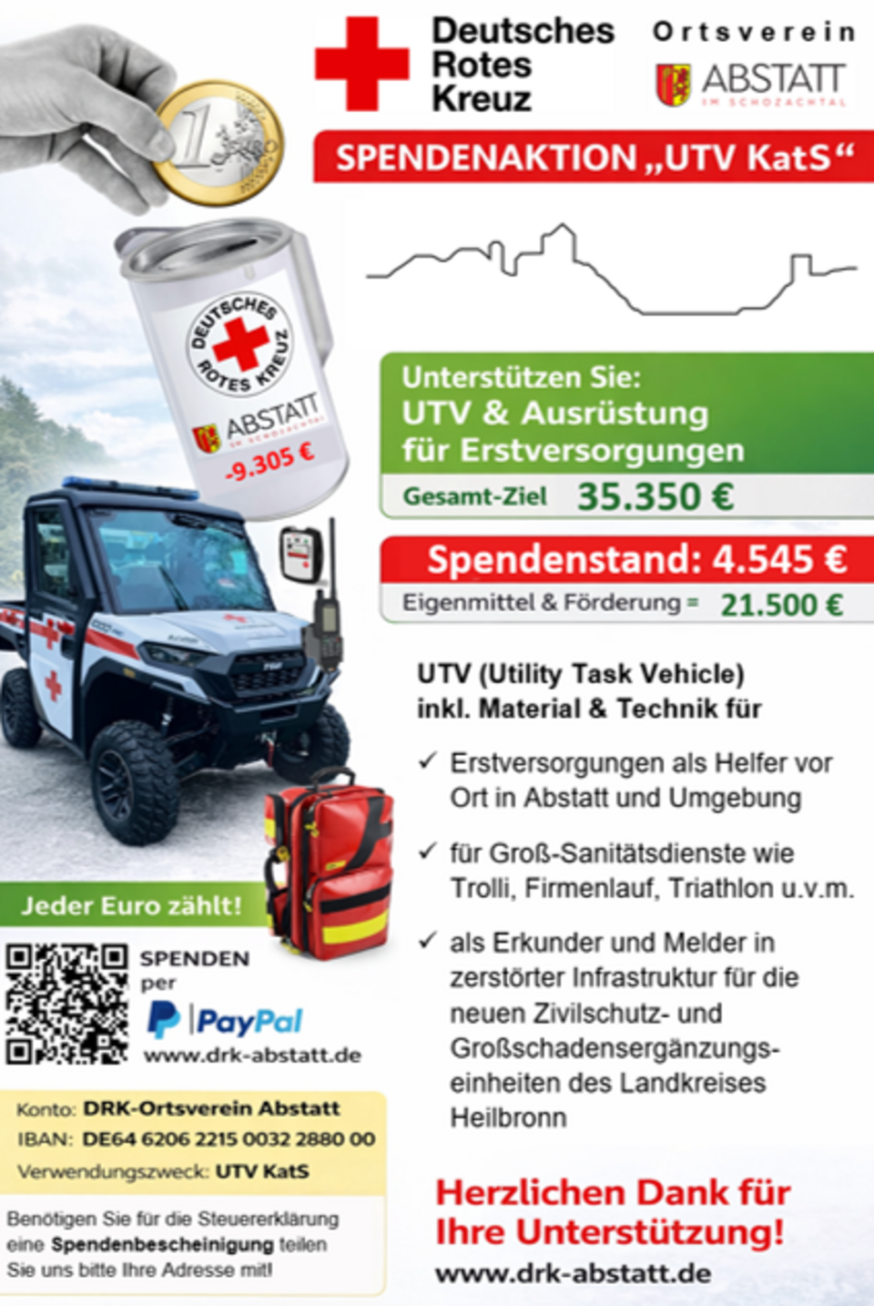 Sie können per Überweisung oder PayPal oder in bar spenden:
